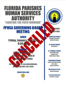 CANCELLED- FLORIDA PARISHES HUMAN SERVICES AUTHORITY GOVERNING BOARD MEETING- JANUARY 23, 2026