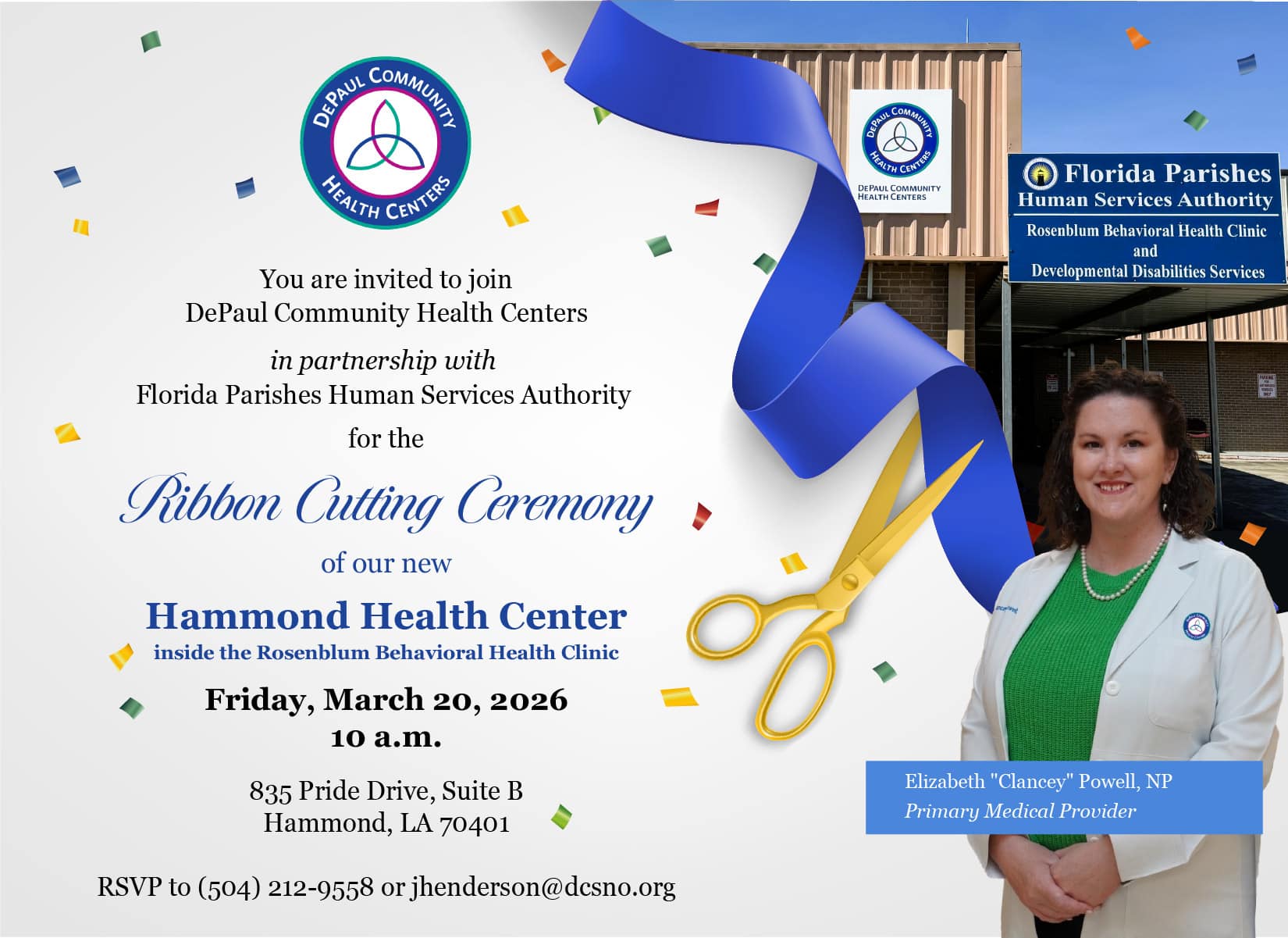 Come celebrate the expansion of accessible, community-focused healthcare services in our region. We look forward to seeing you there!