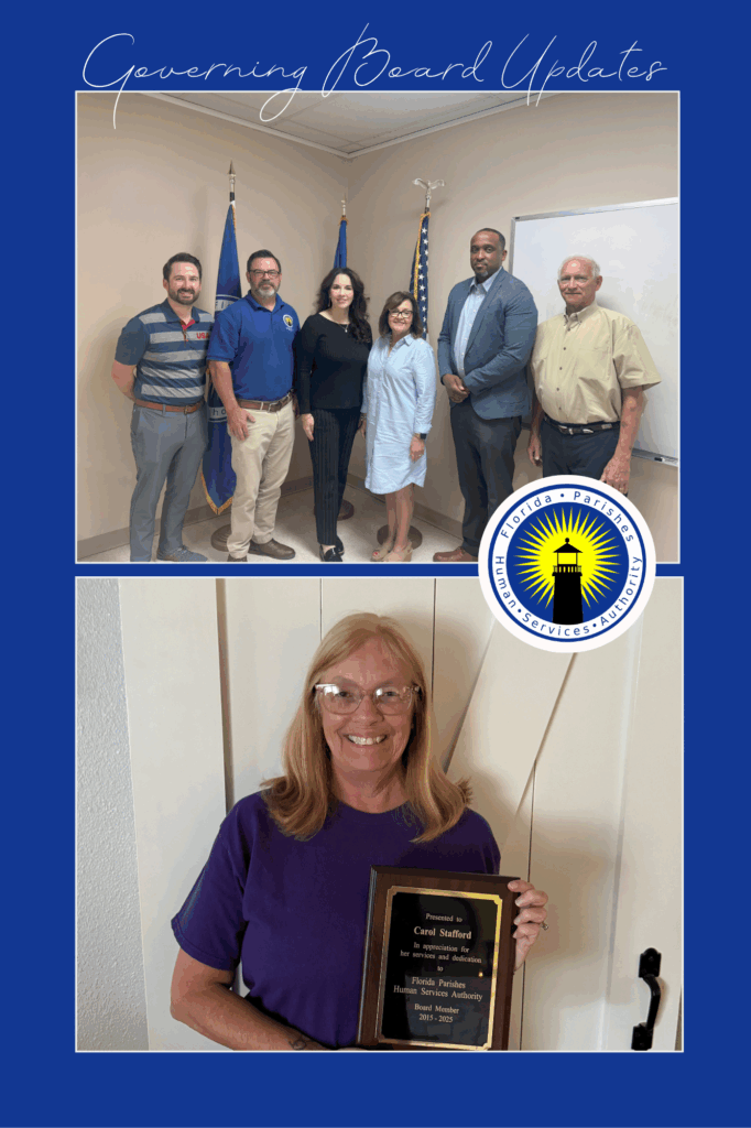 Florida Parishes Human Services Authority is proud to welcome Dr. Byron Hurst, Ed.D. and Ms. Deborah B. Kropog to our Governing Board — and to announce Mr. David Duplantier as our newly appointed Vice Chair!